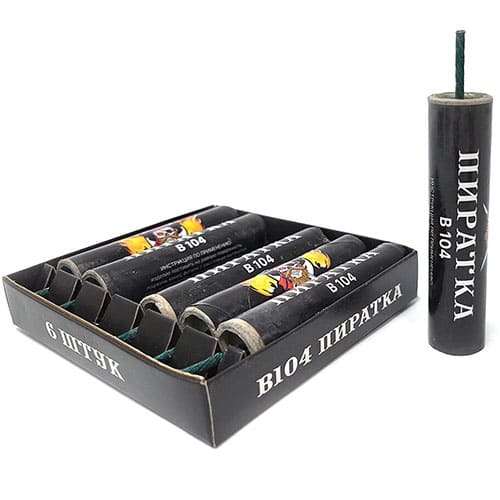 Петарды мощный корсар Пиратка в наборе 6 шт. Фитильные петарды при поджигании фитиля громко хлопают. При использовании петард надо поджечь фитиль и отбросить в сторону от себя и от людей и животных. Задержка при горении фитиля до срабатывания петарды примерно 5 секунд. Купить фейерверки петарды в Москве с доставкой можно или самому можно купить петарды рядом с метро в магазине петард.