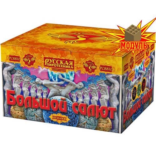 Фейерверк мощный салют хороший калибр 1,25 дюйма 100 залпов. Фейерверк стреляет вверх заряды которые взрываются сферами цветными салютами в виде красивых пиротехнических эффектов. Высота салютов до 50 метров. Продолжительность фейерверка до 1,5 минуты. Мощный фейерверк купить салют большого калибра в Москве можно у нас с доставкой и самовывозом. РАСПРОДАЖА ДЕШЕВЛЕ ОПТОВОЙ ЦЕНЫ производителя пиротехники!